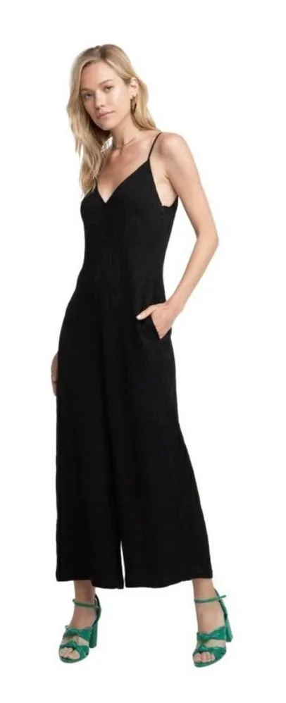 ASTR ARDEN WIDE LEG black crepe ribbed JUMPSUIT large 84% Rayon / 16% Nylon, Dry Clean Only, Sle... Show more