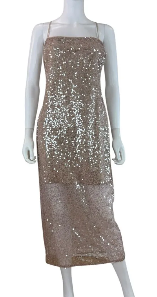 Absolutely stunning blush pink/nude fully sequined maxi length cocktail dress, new with tags. Dress... Show more