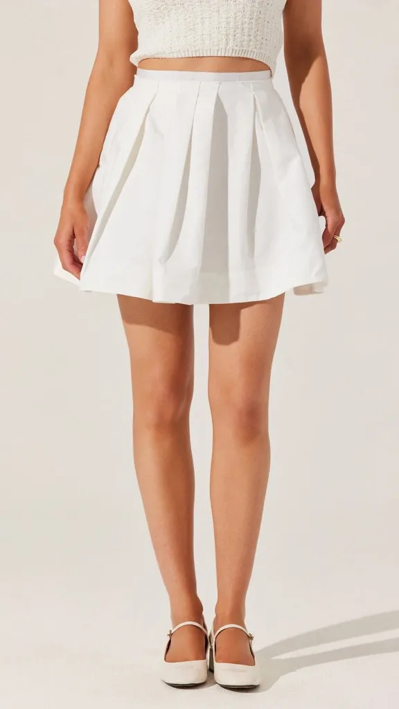 Pleated mini skirt Peekaboo layered waistband Functional side pockets Concealed back zipper Dry clea... Show more