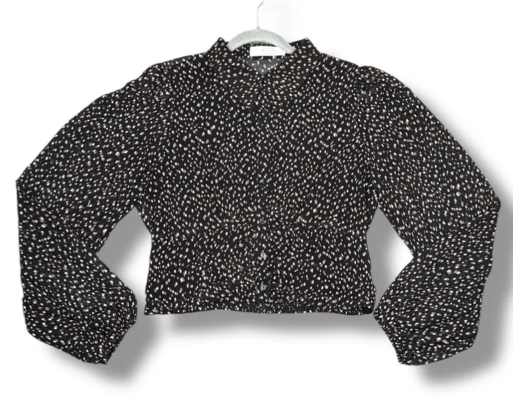 ASTR The Label Black Taupe Geo Print Ruched Long Sleeve Blouse Size XL Approx Measurements: Pit to... Show more