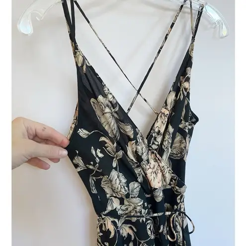 Nordstrom brand ASTR the label faux wrap maxi dress. Black with beautiful lush cream and pink flower... Show more