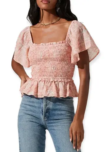 Flutter Sleeve Smocked Top CLAY MULTI FLORAL Size Medium New without Tags Approx Measurements Leng... Show more
