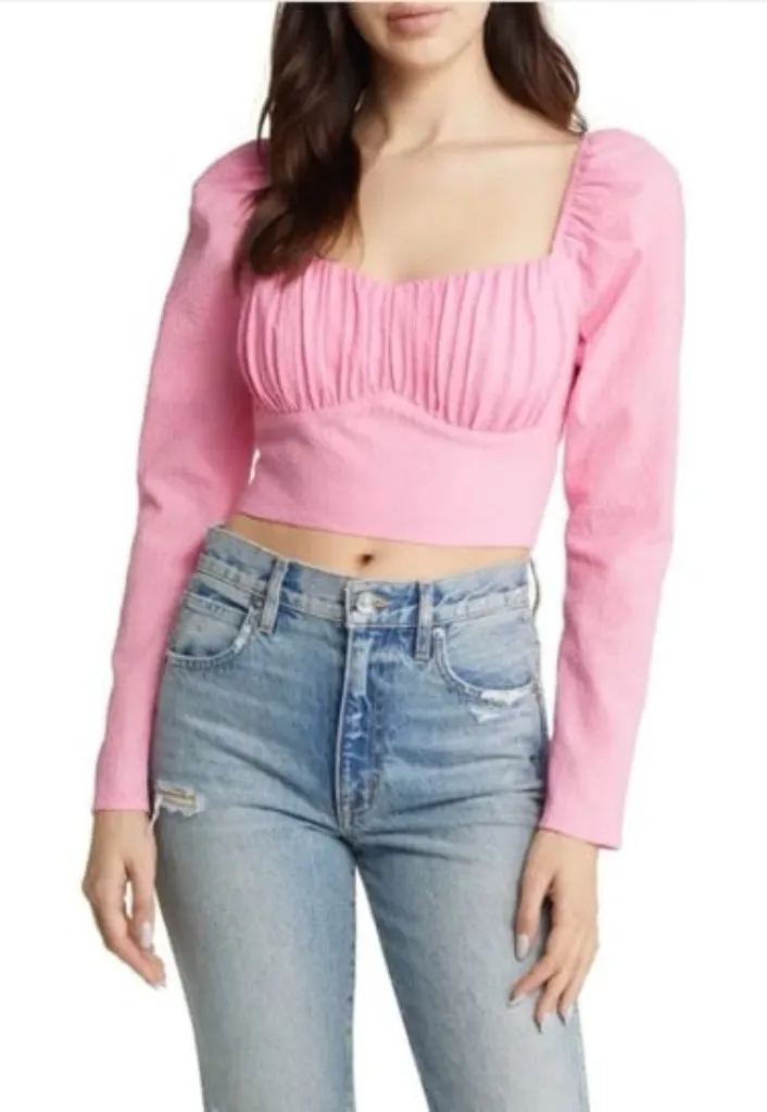 ASTR THE LABEL Long Sleeve Sweetheart Neck Crop Top - Pink Size XL - $35 - From Deidre