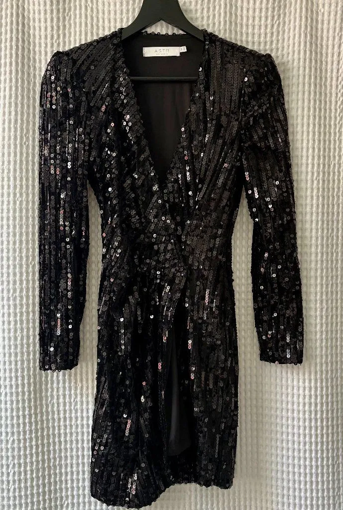 Astr the Label black Paris sequined V-neck wrap minidress. Excellent preowned condition. Great for a... Show more