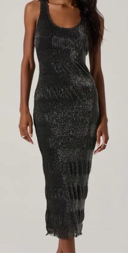 ASTR‎ The Label Pleated Lurex Midi Tank Dress Gunmetal S Black - $45 - From Nordic