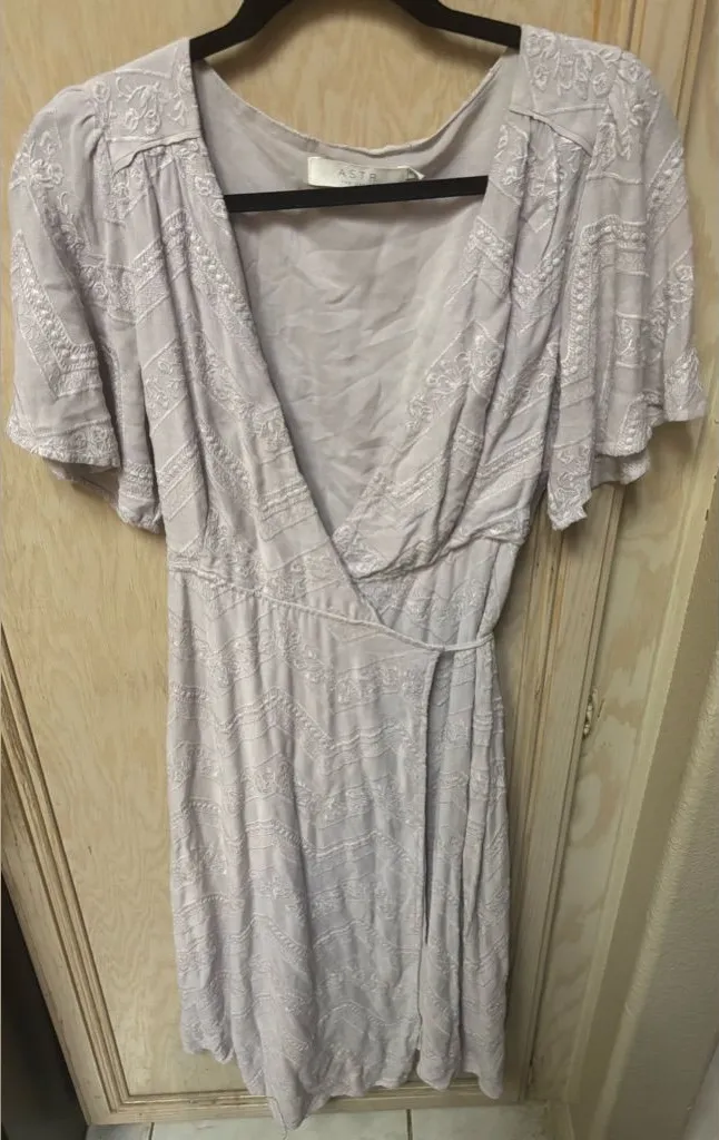 The ASTR The Label Purple Lavender Embroidered Short Sleeve Wrap Dress in size Medium is a versatile... Show more