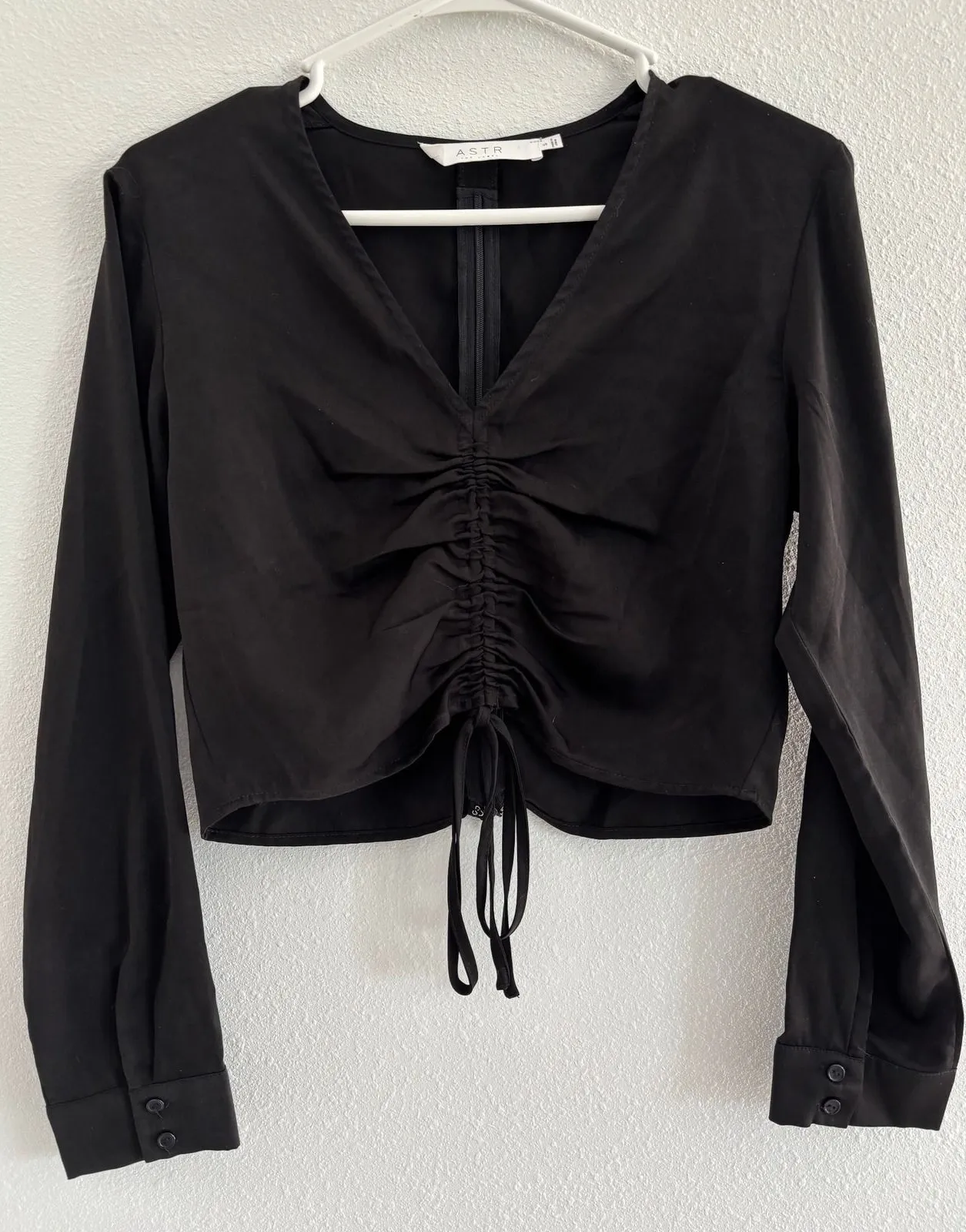- Brand: ASTR The Label - Size: Women's Small - Color: Black - Details: Cinch, Cropped, Long Sleeve... Show more