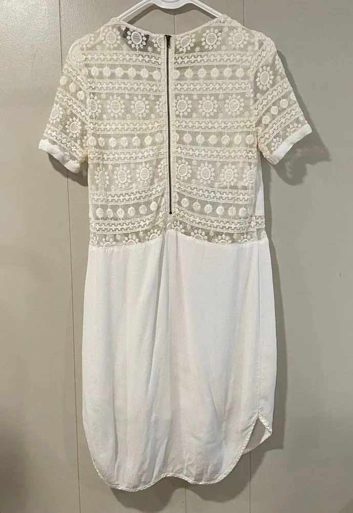 ASTR The Label white lace short sleeve dress featuring a delicate sheer embroidered top and solid li... Show more