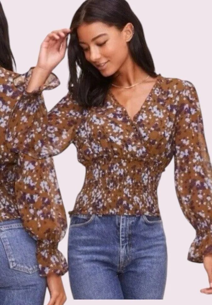 Elevate your style with this chic floral top. Featuring a blend of brown and purple hues, it's perfe... Show more