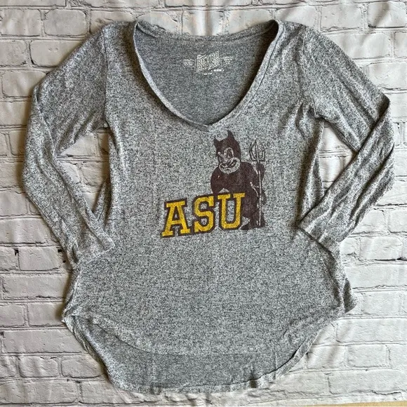 ASU Arizona State University Sundevils V-neck Long Sleeve shirt Retro Brand Gray Silver Size M - $10 - From Jen