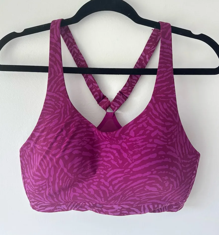 Athleta Advance Printed Sports Bra Fiji Magnolia Pink Animal Striped Zebra Good condition Size... Show more