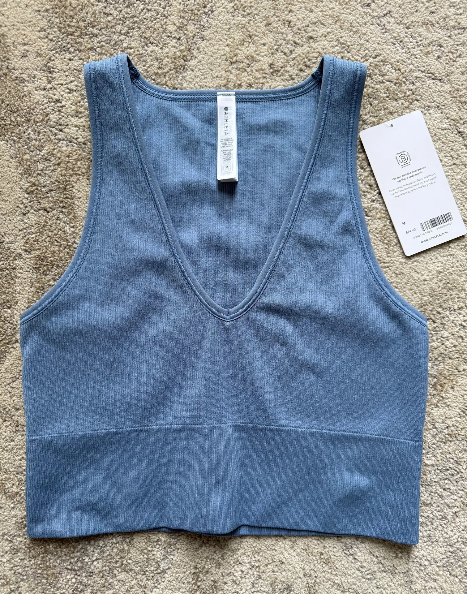 NWT crop rib tank. Super cute. Beautiful cornflower blue color. 87% nylon 13% Elastan