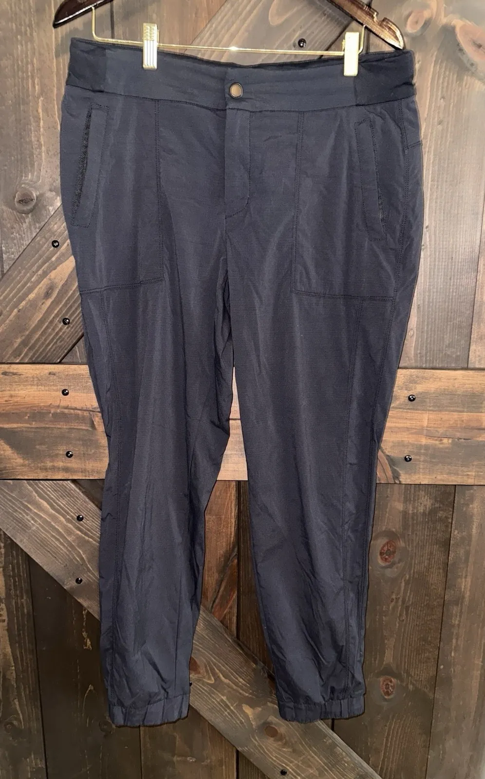 Athleta Black Mid Rise Elastic Waist Zipper Pocket Tapered Jogger Pants Size 12