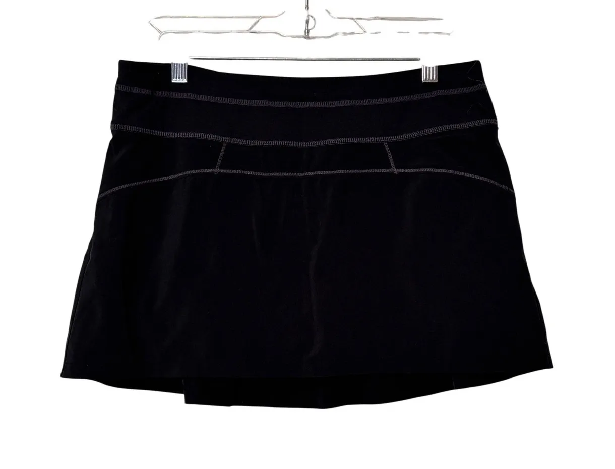 Athleta black athletic skort with built-in purple shorts. Features include contrast stitching, a zip... Show more