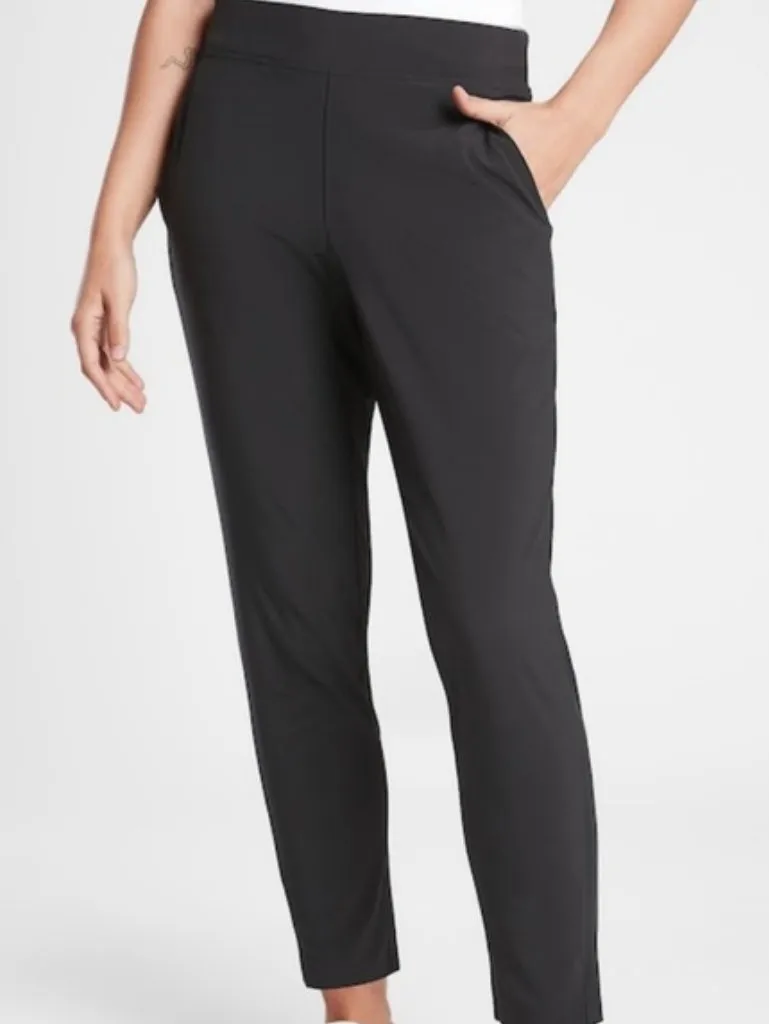 Athleta Brooklyn Ankle Pant Knit Panels Slim Leg Joggers Solid black Semi-fitted, mid rise, tapere... Show more