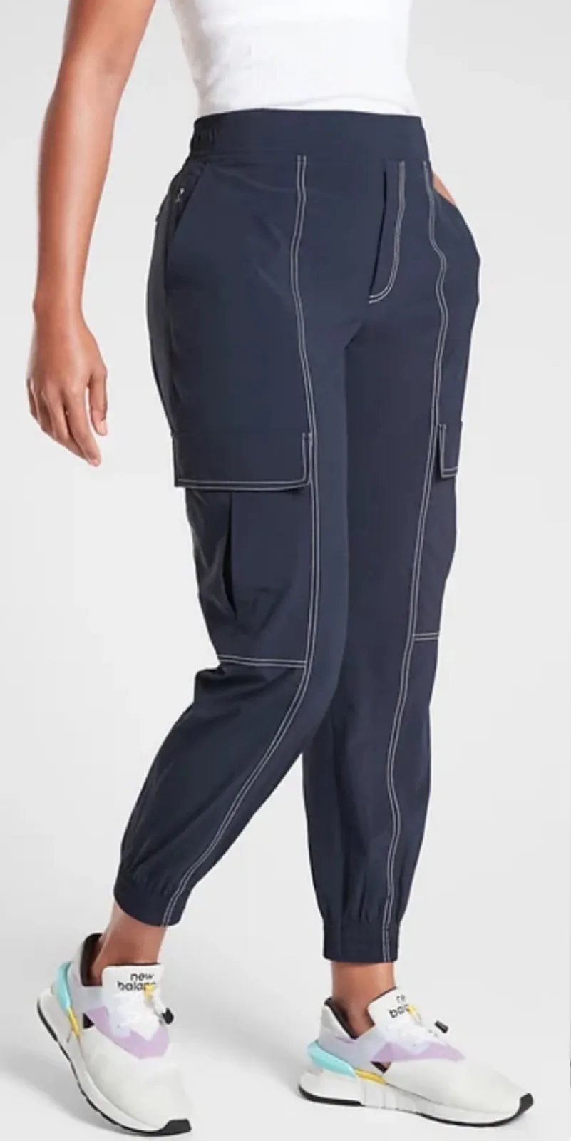 Athleta Chelsea Utility Jogger in Navy Size 10 Contrast Seams Zip Pockets APPROX. MEASUREMENTS:... Show more