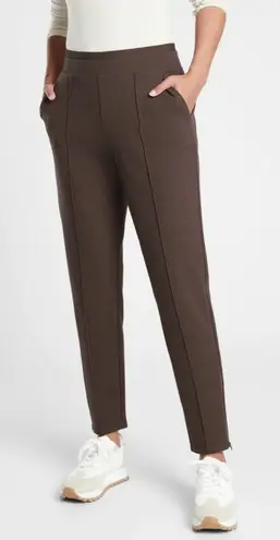 Excellent condition. Chocolate brown, elastic comfort band, tapered leg with zipper. Visible seams d... Show more