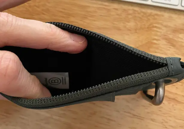 Zipper compartment and 2 outer card slots. With clip. Never used. Army green.