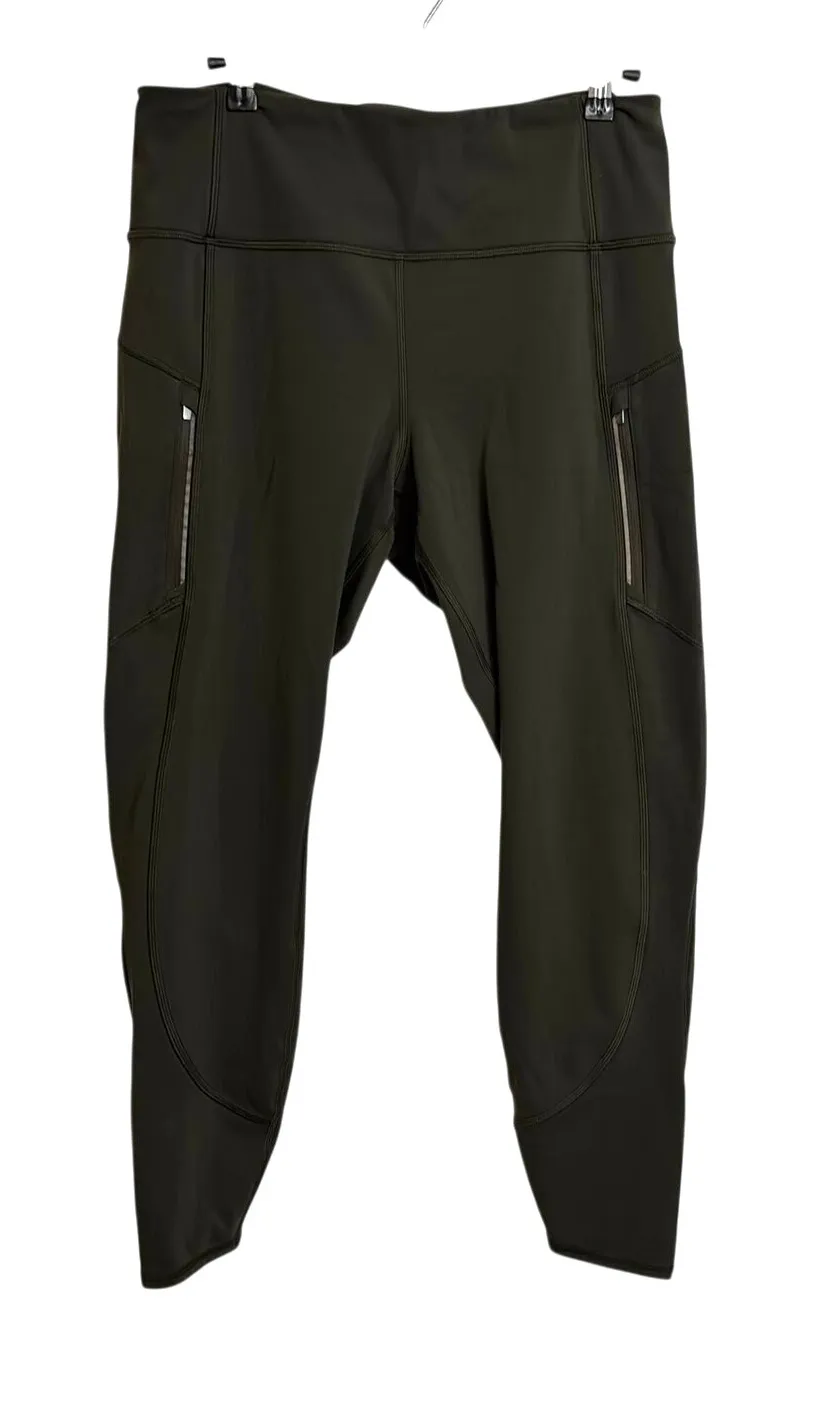 Athleta Leggings Womens L Olive Green Rainier Tight Fleece Lined Zip Pockets Athleta Rainier High R... Show more