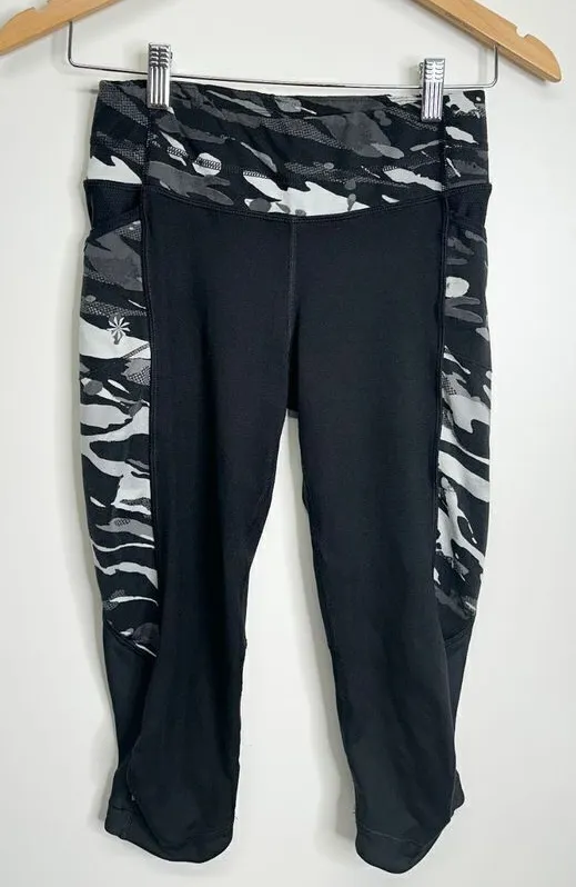 Athleta Leggins Womens Capri Camouflage Print Black/White Size XS Great pre-owned condition Measur... Show more