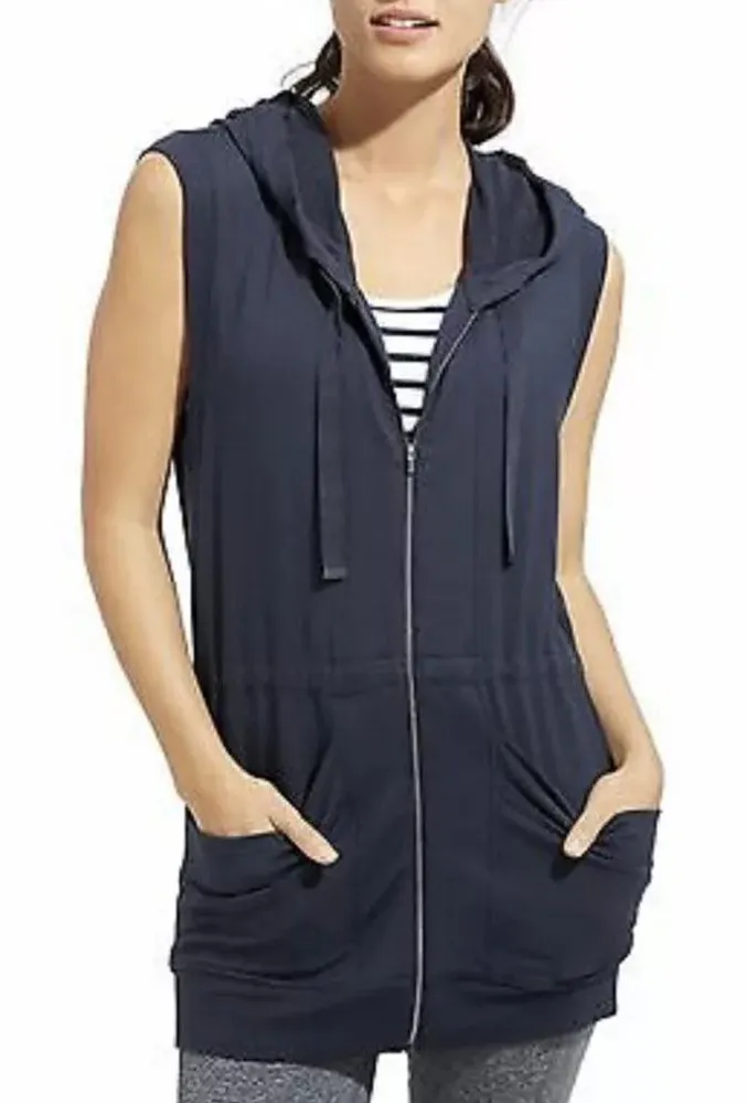 Athleta Lotus Vest Hoodie Navy Blue Long Full Zip Sleeveless size XXS in excellent Conditions.