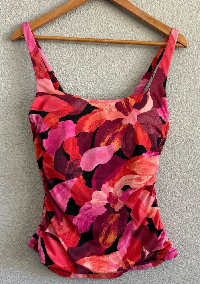 ATHLETA Maldives Bra Cup Tankini Removable cups Liana Floral Mauve Size 38 B/C Bin#0324S10044