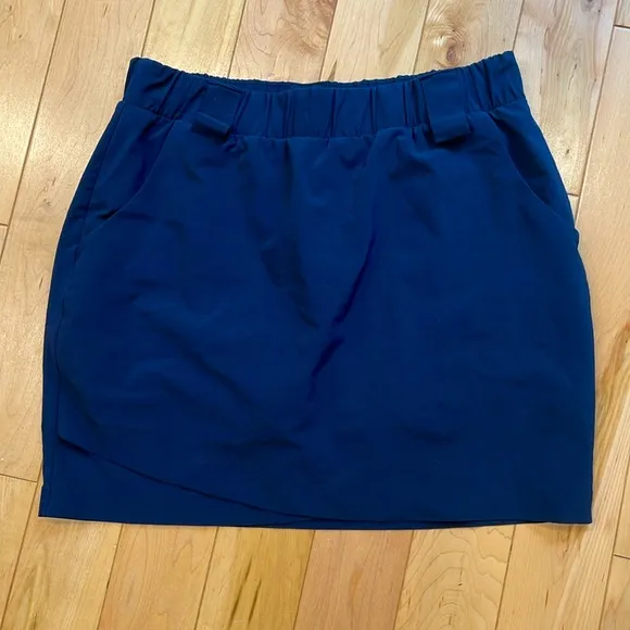 EUC/Athleta navy blue elastic waist mesh lined tennis skirt with 2 front slash pockets has belt loop... Show more