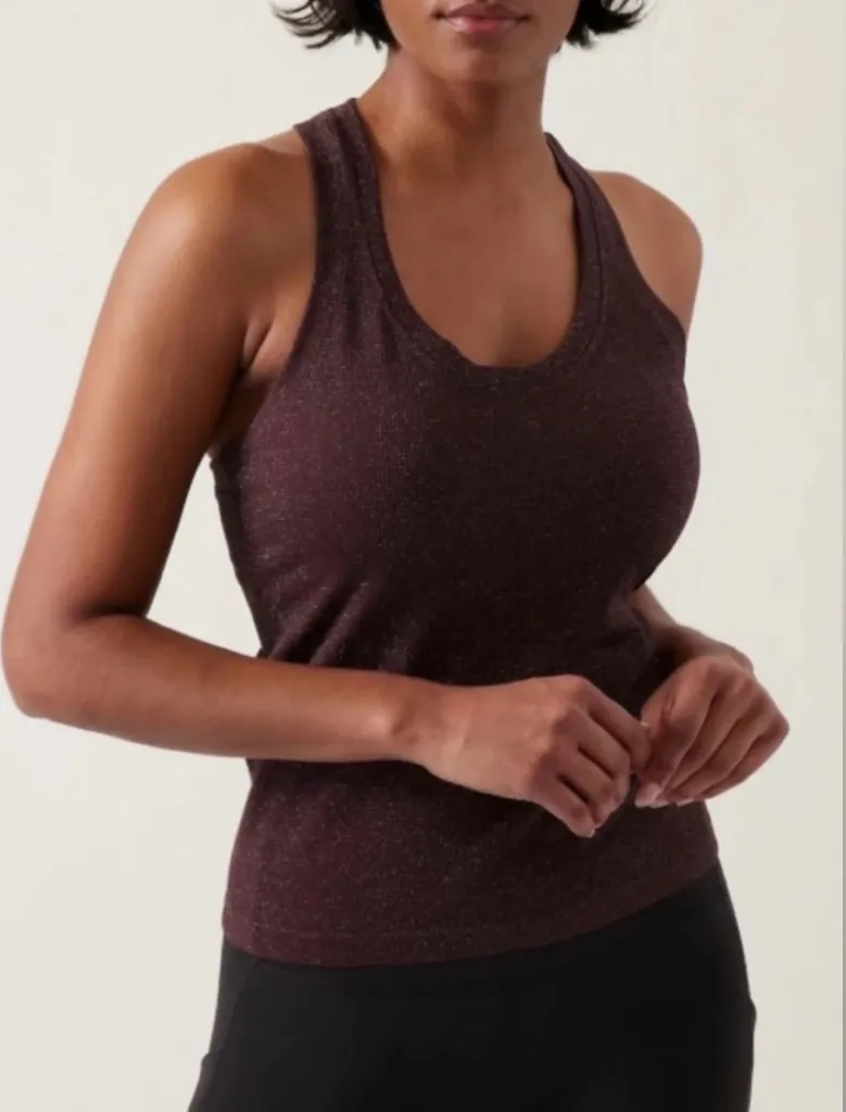 Chic maroon tank top by Athleta. Ideal for workouts or casual wear. Soft and comfortable fit.