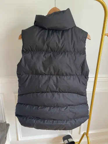 Athleta puffer vest, black, size large, hooded (attached hood), zipper with snap buttons over
