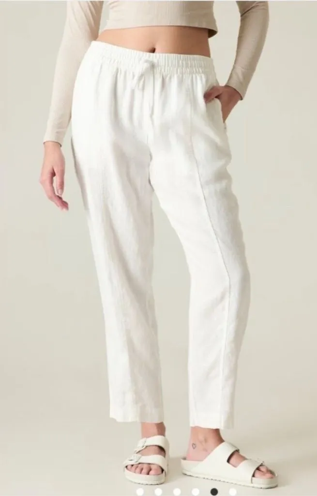 ATHLETA RETREAT‎ LINEN HIGH RISE ANKLE PANT 100 % LINEN Size XS White - $35 - From Leslie