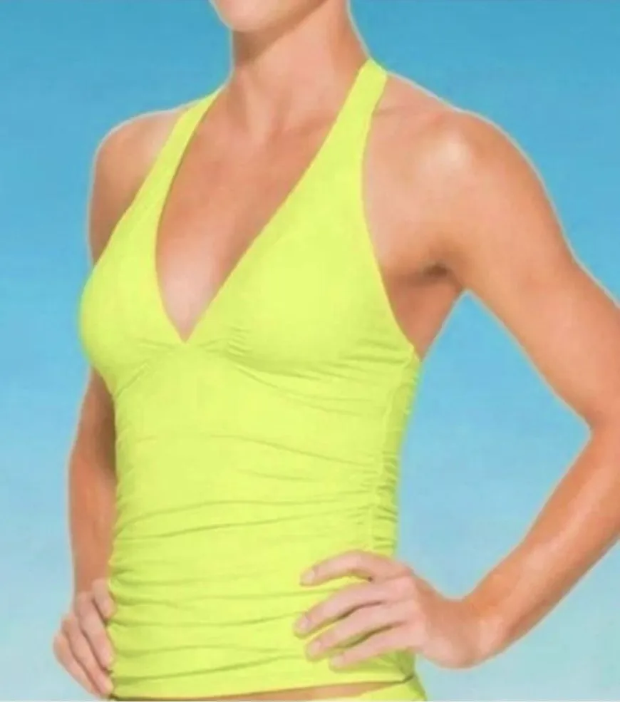 Athleta Shirrendipity lemon yellow, halter tie, v-neck, ruched side tankini top. In good, used condi... Show more