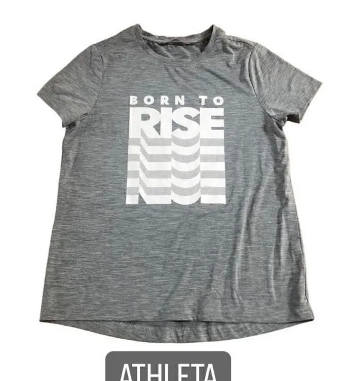 Authentic ATHLETA shirt tee top short sleeve Activewear Born to rise message Gray white colo... Show more