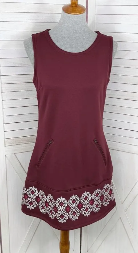 Athleta Sleeveless Tunic Fleece Lined Scuba Knit Dress Maroon Size Small Burgundy maroon red Scub... Show more