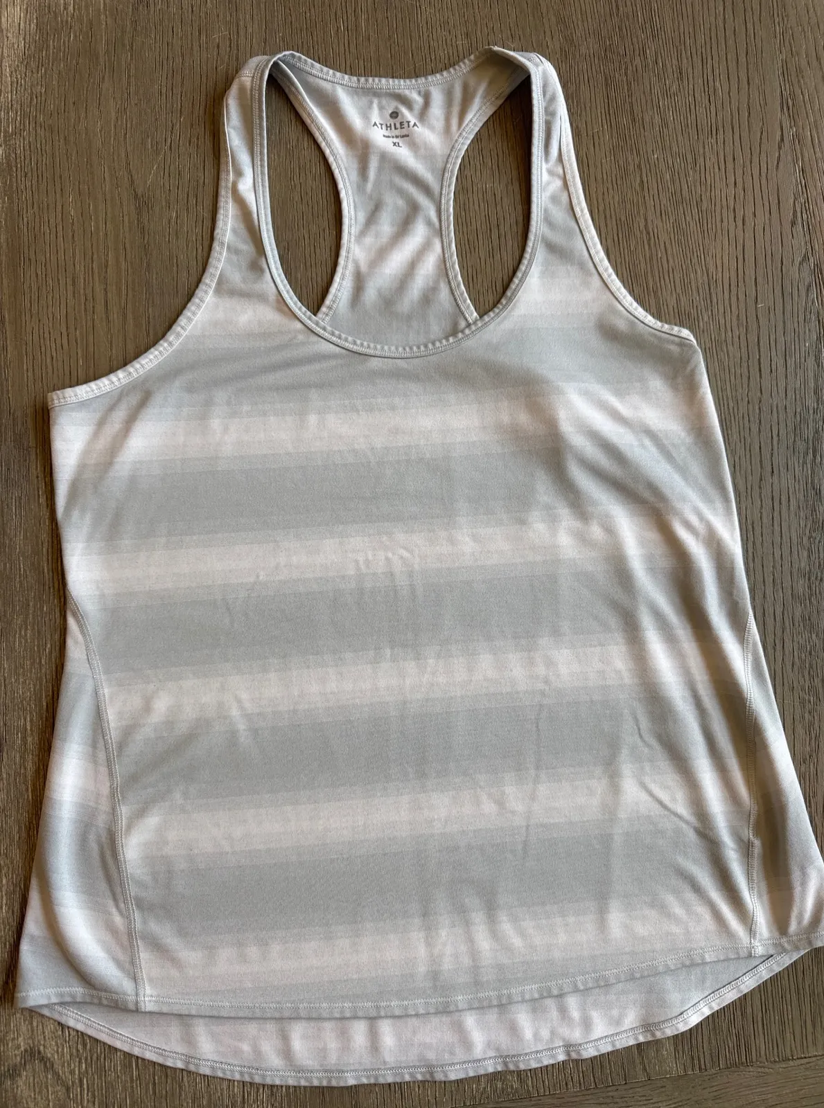 Striped racerback tank top by Athleta. A versatile and sporty tank. There is a small spot on back s... Show more