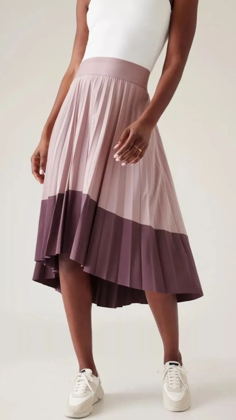 tags: casual wear, athleisure, day-to-night, spring fashion, summer outfit, pleated skirt, midi length, relaxed fit, stylish skirt, workout-to-lifestyle, versatile piece, brunch attire, weekend wear, travel outfit, office casual, comfortable fashion, feminine style, sporty chic, transitional piece, trendy look, light and airy, layering piece, elegant casual, active fashion