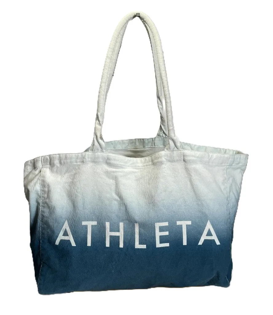 Athleta Large blue ombre tote bag 100% cotton canvas Gym, travel, shopping bag Good used conditi... Show more