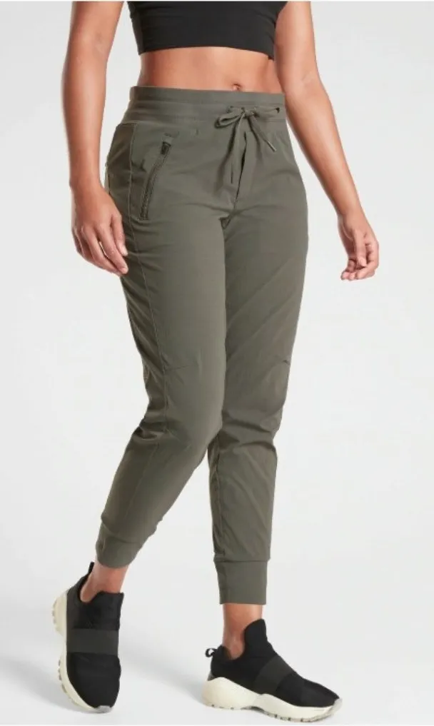 Brand: Athleta Waist: 20" across Inseam: 27" Style: Trekkie North Jogger pants with a relaxed fi... Show more