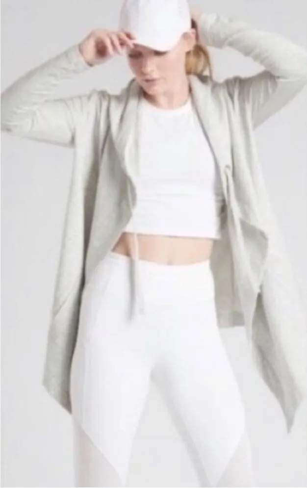 Athleta Vista Wrap Hooded Cardigan Sweater - Light Grey Heather - Women’s Size Small - EUC #405149... Show more