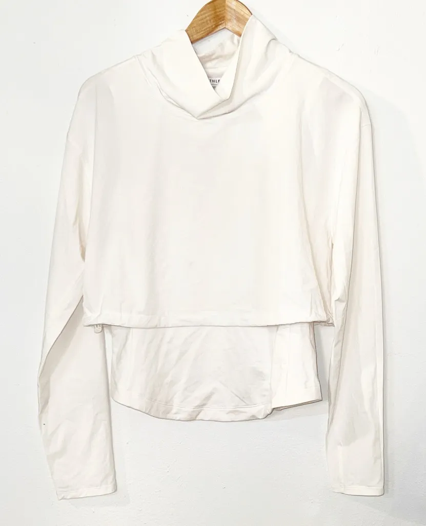 Athleta whistler hybrid top Long sleeve Thumbholes size small Cowl neck Great Preowned Condition... Show more