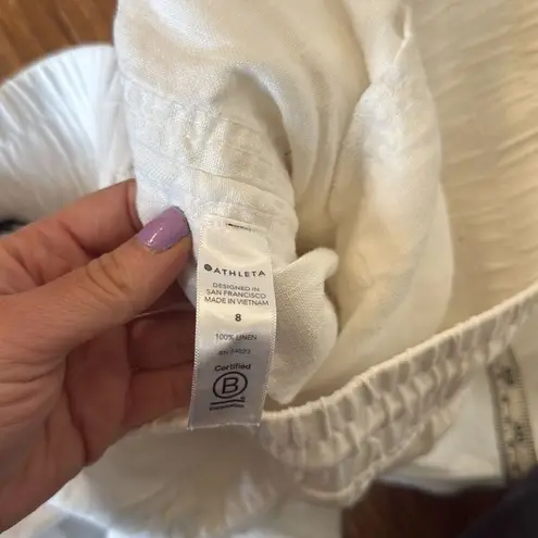 Brand: Athleta Description: Cabo wide leg linen pant with zipper pockets Size: 8 Color: white Con... Show more
