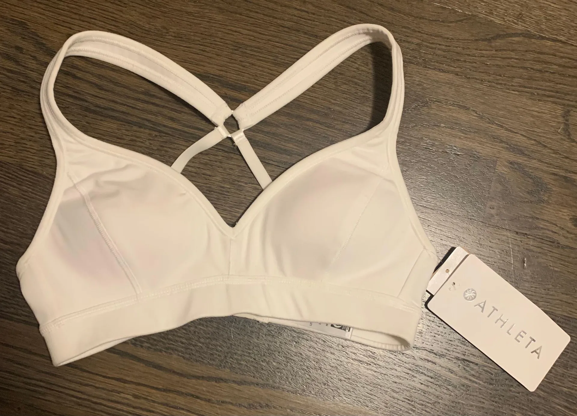 White Sports Bra in Brand New Perfect Condition! Never worn. Materials listed in pictures. No flaws.... Show more