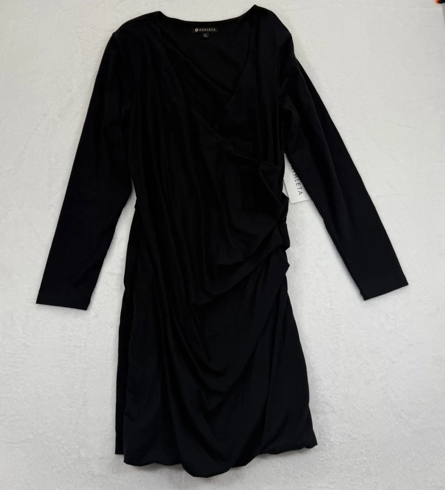 Style: Wrap Dress Dress Length: Knee Length Color: Black Department: Women Sleeve Length: Long Sleev... Show more
