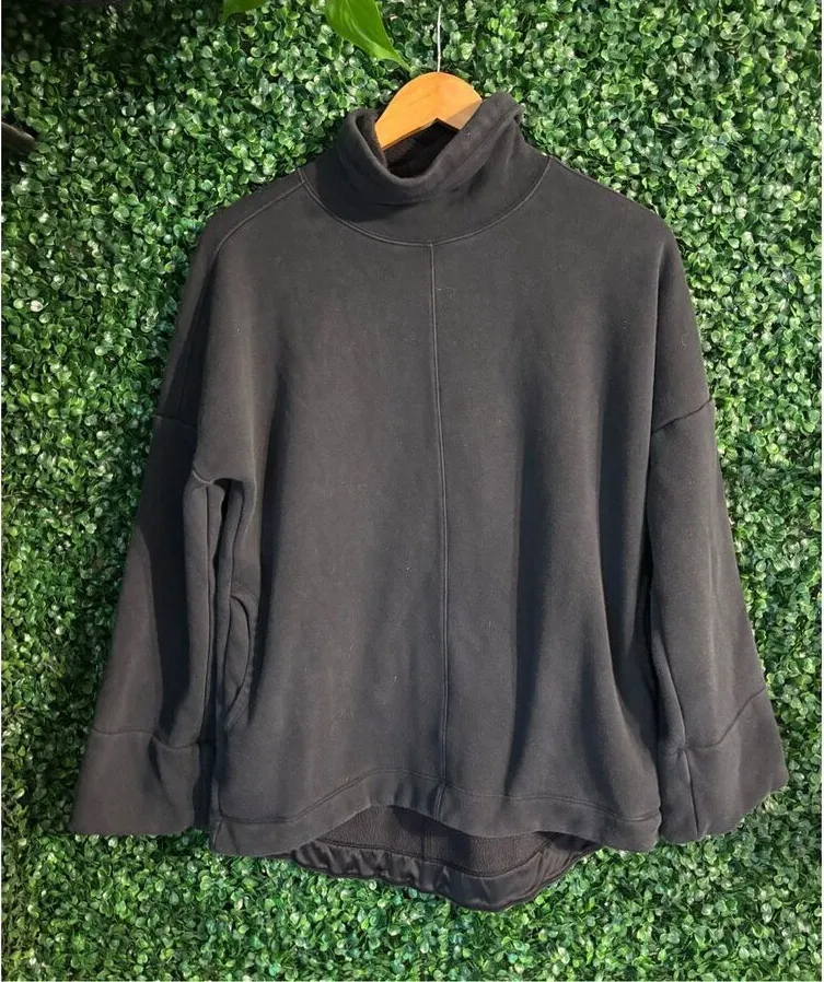 Athleta Women's Cozy Karma Funnel Neck Sweatshirt Tunic Fleece Sz XS Black Pockets -Very Soft -Good... Show more