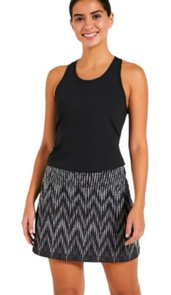 This Athleta mini skirt in size S is designed for women and features a geometric pattern in gray. Ma... Show more