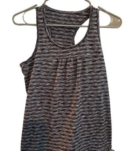 Keywords: Athleta, women's tank, racerback, scoop neck, gray, striped, built-in bra, side drawstring, casual, summer, breathable fabric, loose fit, pre-owned, space dye.