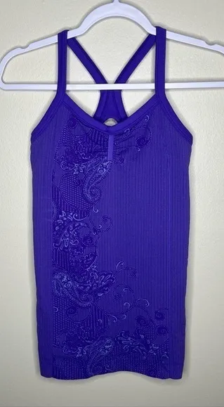 Athleta Chevron Paisley Print Stretch Knit Athletic Tank S Small chevron and paisley print purple... Show more
