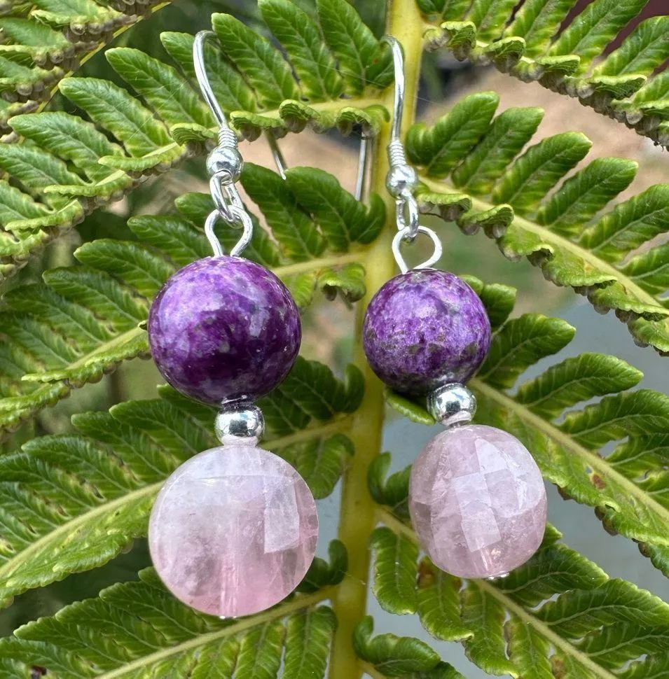 🌺 Handcrafted in Maui with Aloha – These unique dangle earrings are lovingly made by hand on the beautiful island of Maui, Hawaii, bringing island energy to your everyday style. 💎 Rare Gemstones: • Vibrant 9mm AAA-grade Atlantisite beads (natural purple stichtite swirled in green serpentine, sourced from Tasmania – a rare and sought-after healing stone) • Faceted coin-shaped rose quartz from Madagascar (soft pink glow for heart-opening energy) 🔗 Premium Materials: • Genuine .925 sterling silver hooks, accents, and findings for comfortable, all-day wear • Hypoallergenic and nickel-free • Total drop length: approximately 1.5-2 inches (lightweight and elegant) ✨ Healing Properties: • Atlantisite: Promotes peace, emotional healing, and connection to ancient wisdom • Rose quartz: Known as the stone of unconditional love, opening the heart chakra • Perfect combo for balance, compassion, and positive vibes 💜Bracelet SOLD separately