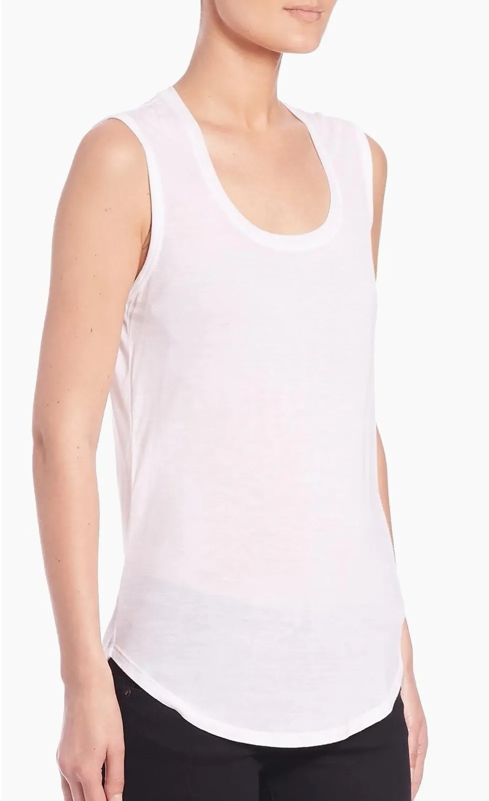 Streamline your off-duty look with this soft tank, finished with a classically-cool hem. Scoopneck Sleeveless Curved hem Pullover style About 30" from shoulder to hem Modal Hand wash