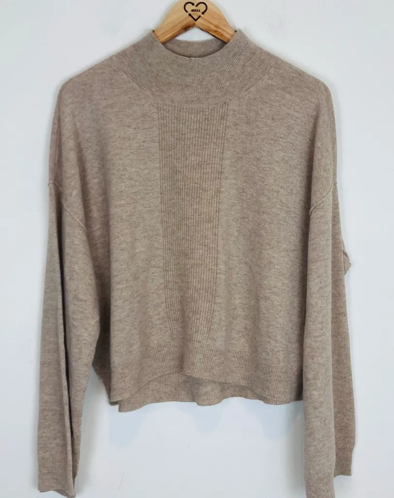 ATM tan wool cashmere blend mock neck sweater w/ wide sleeves & ribbed detail Brown - $79 - From Ann