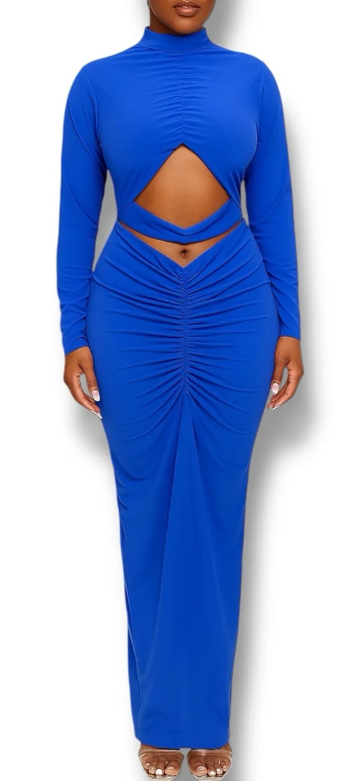 Atoir The Ariel Dress Long Sleeve Ruched Front Cut Out‎ Maxi Dress NWT Sz US 4 Blue - $213 New With Tags - From Patchworked